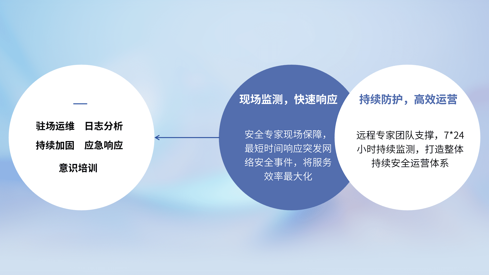 针对客户行业特性,,提供专属的一站式安全管理服务,,,帮助客户全面感知网络空间威胁,,通过安全专家的线上、、、、线下防护支持,,,实现风险闭环,,,将安全保障常态化,,为客户打造常态化安全运维运营服务。。。。